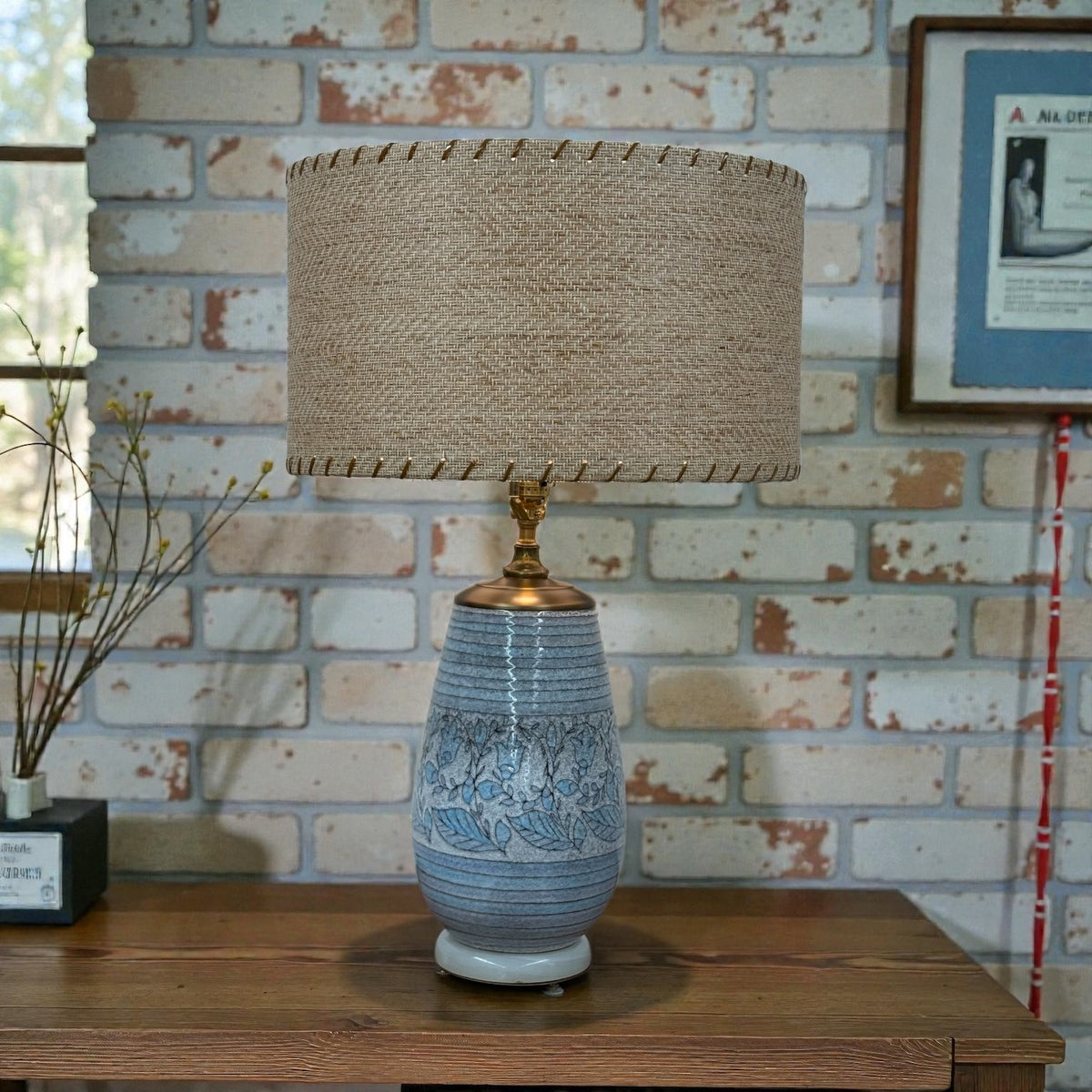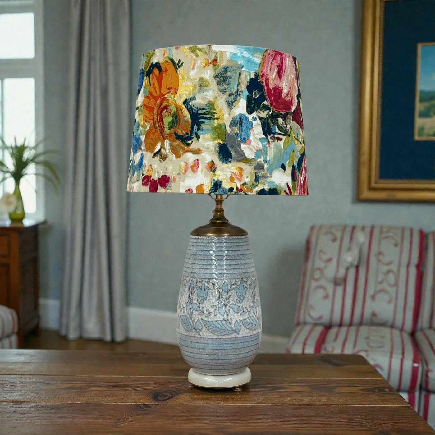 Blue Floral Pottery Vase Lamp