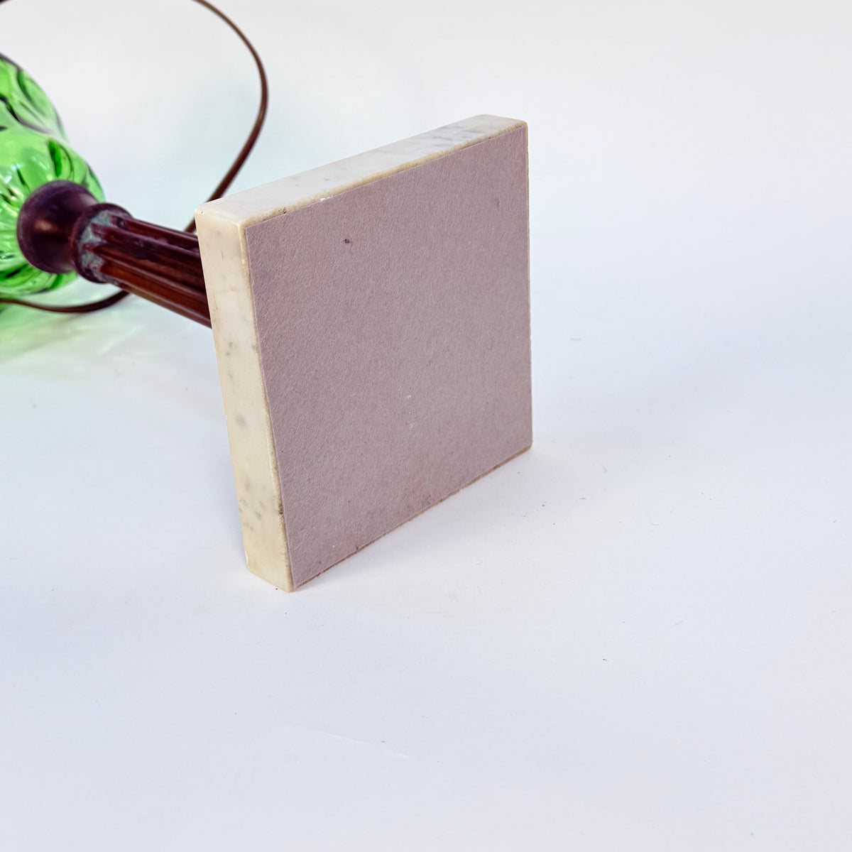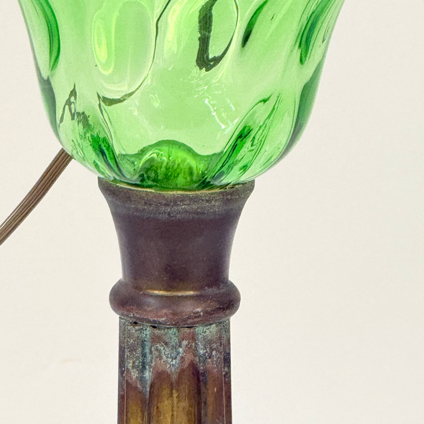 Please note that because this is a converted oil lamp, the wiring enters above the glass font - it does not run through the lamp body as is typical on a converted oil lamp.