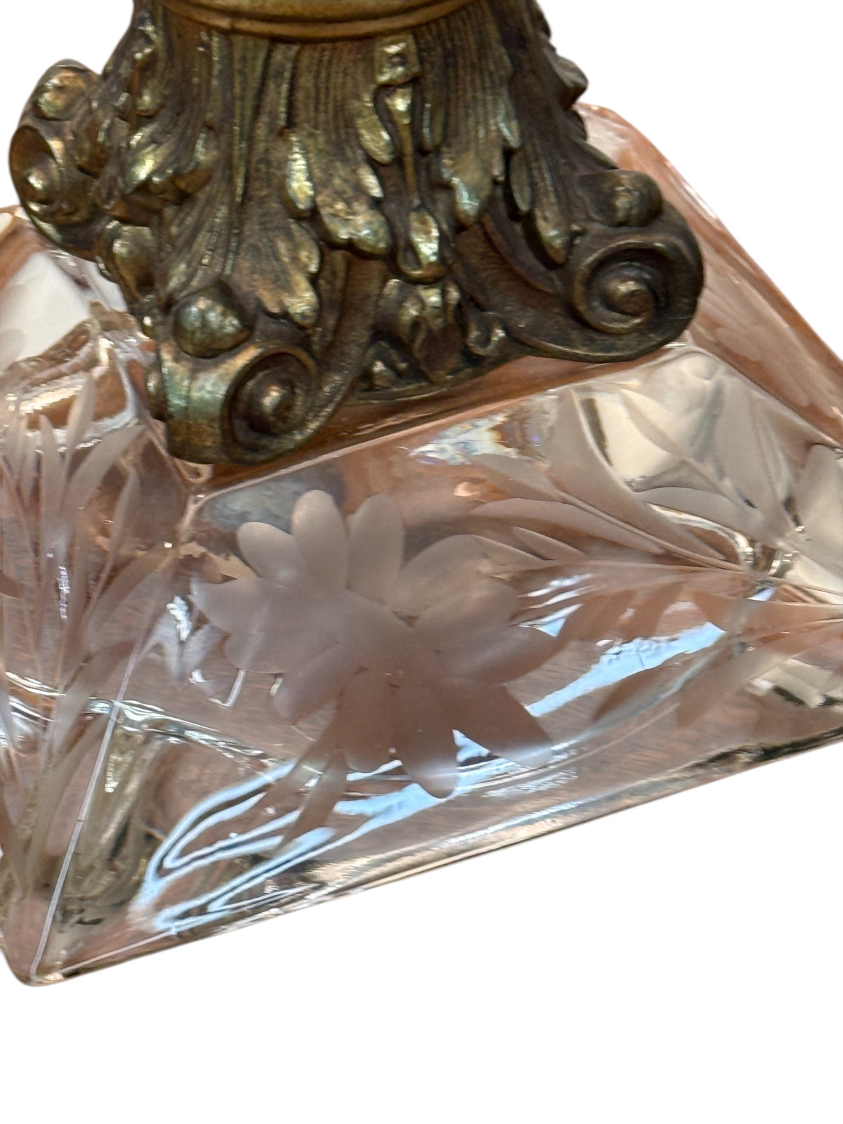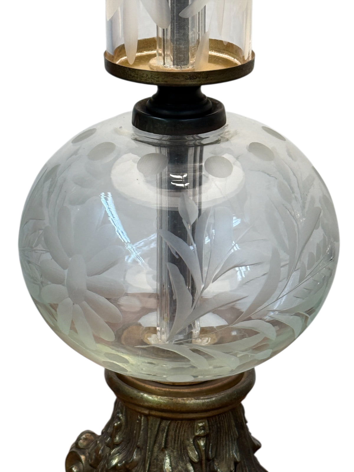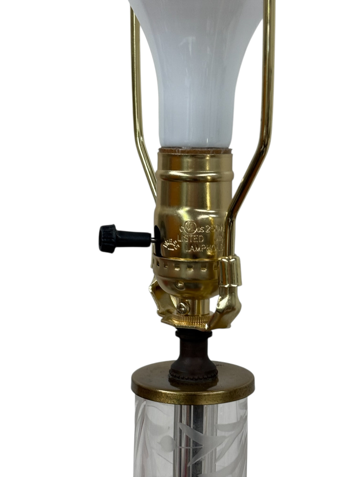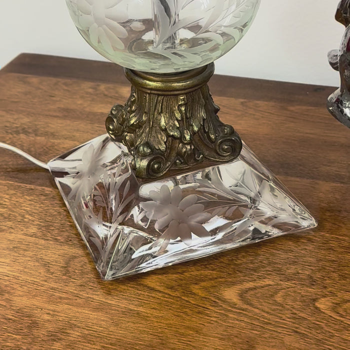 The original glass pieces are in perfect condition. The metal and brass parts are all original but are showing their age, lending character to the lamp!