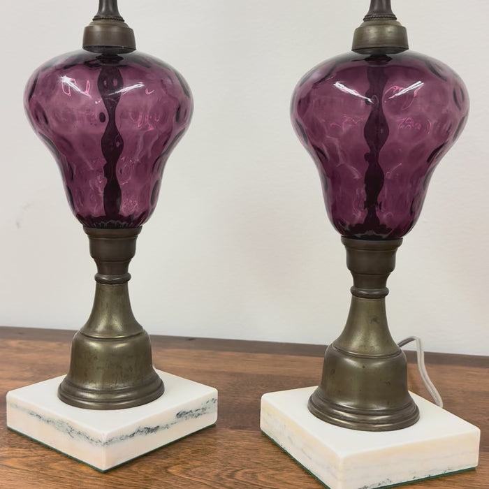 PAIR of Amethyst Glass Lamps