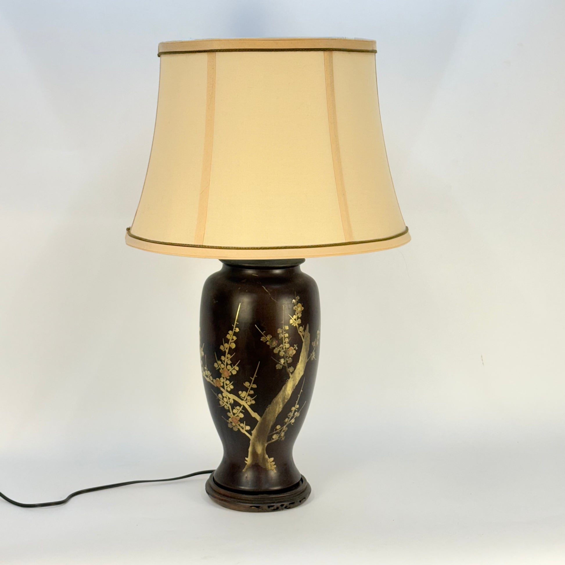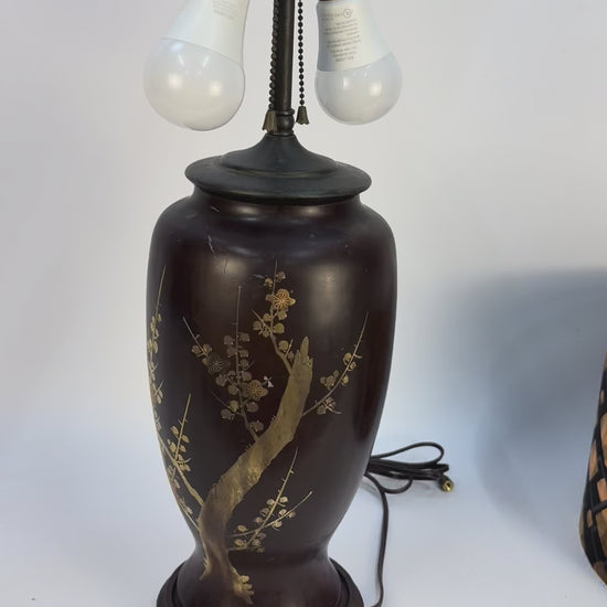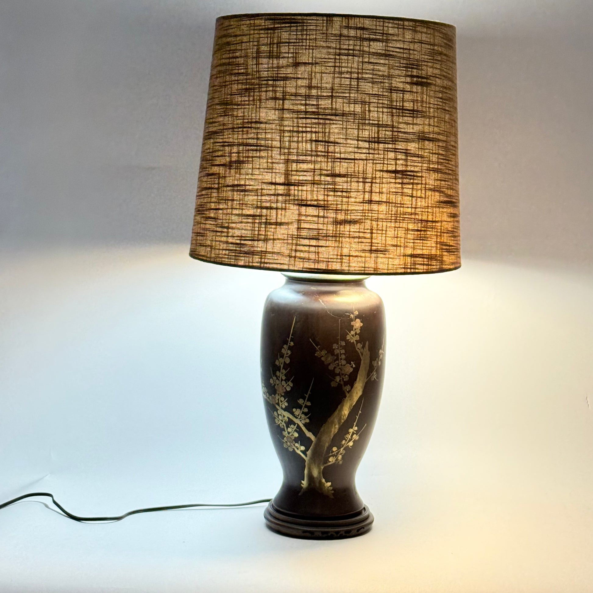 Brown Asian Ceramic Lamp with Cherry Blossoms